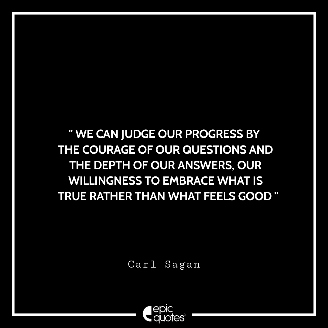 8. We can judge our progress by the courage of our questions and the depth of our answers, our willingness to embrace what is true rather than what feels good. – Carl Sagan
