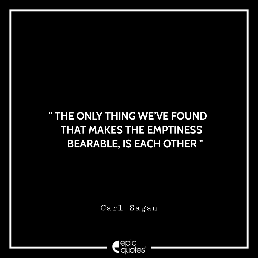 10. The only thing we’ve found that makes the emptiness bearable, is each other. – Carl Sagan