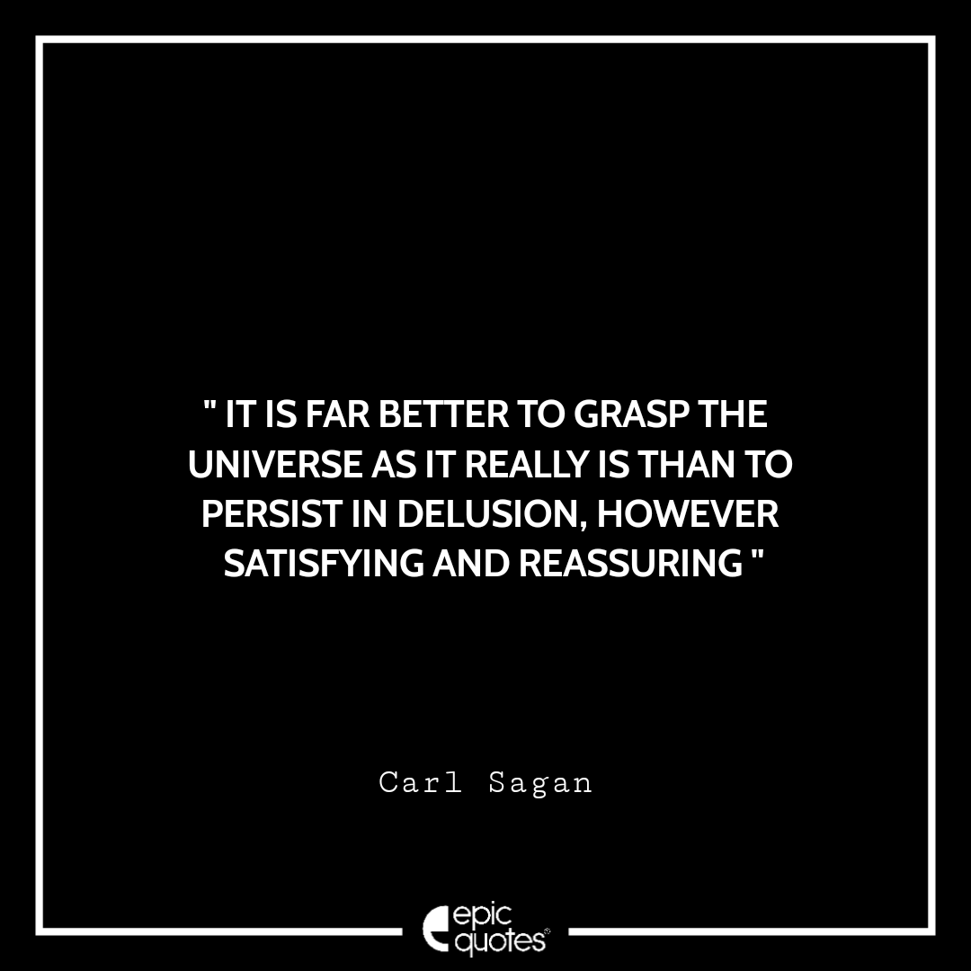 14. It is far better to grasp the universe as it really is than to persist in delusion, however satisfying and reassuring. – Carl Sagan