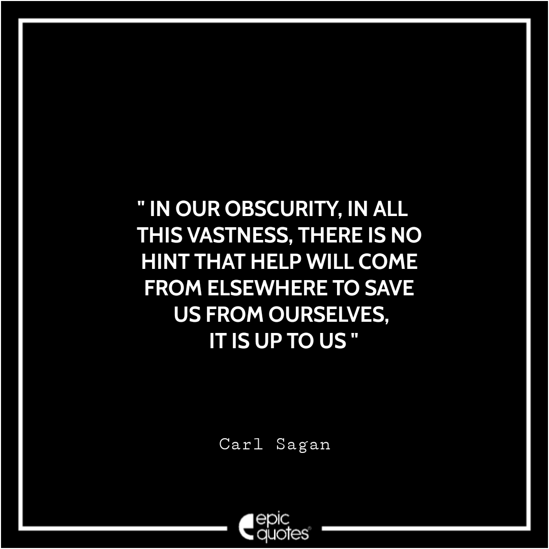19. In our obscurity, in all this vastness, there is no hint that help will come from elsewhere to save us from ourselves, It is up to us. -Carl Sagan