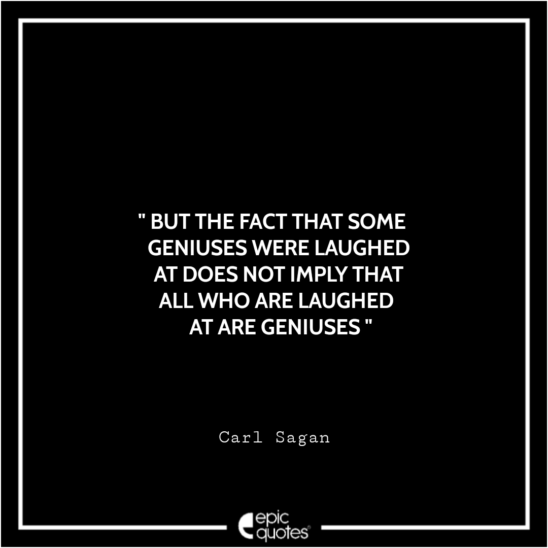 22. But the fact that some geniuses were laughed at does not imply that all who are laughed at are geniuses. -Carl Sagan