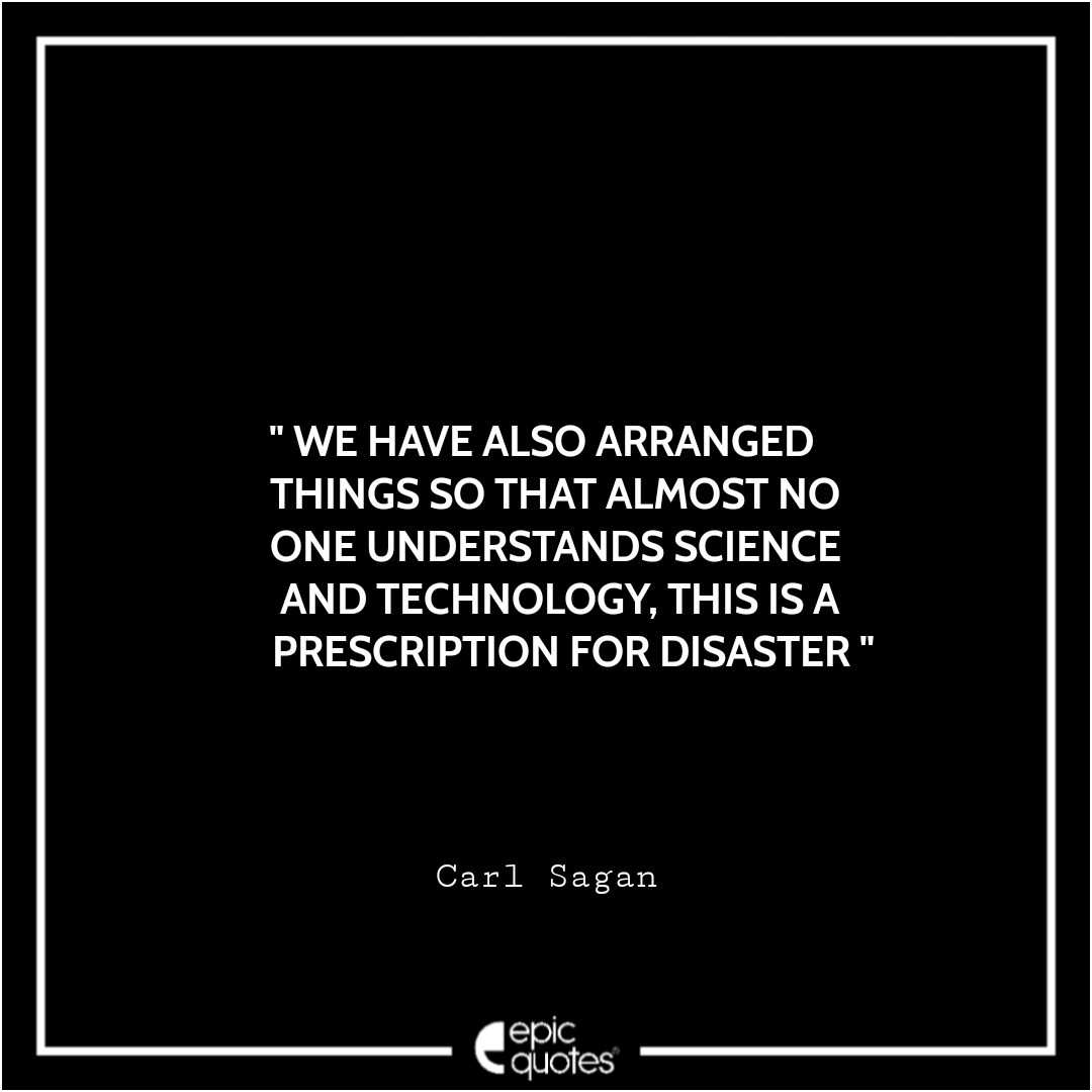 24 We have also arranged things so that almost no one understands science and technology, This is a prescription for disaster. -Carl Sagan