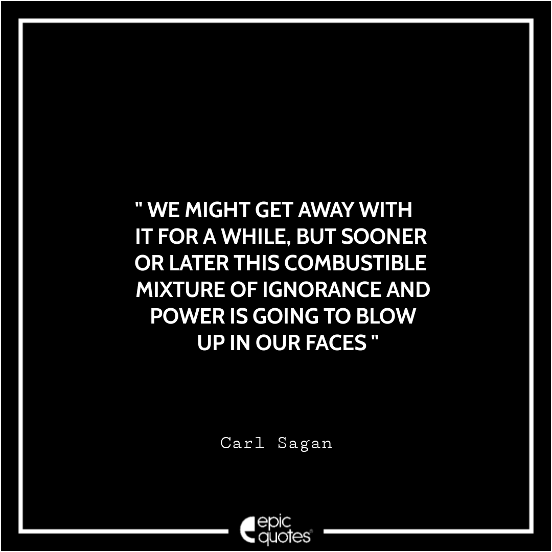 25. We might get away with it for a while, but sooner or later this combustible mixture of ignorance and power is going to blow up in our faces. -Carl Sagan