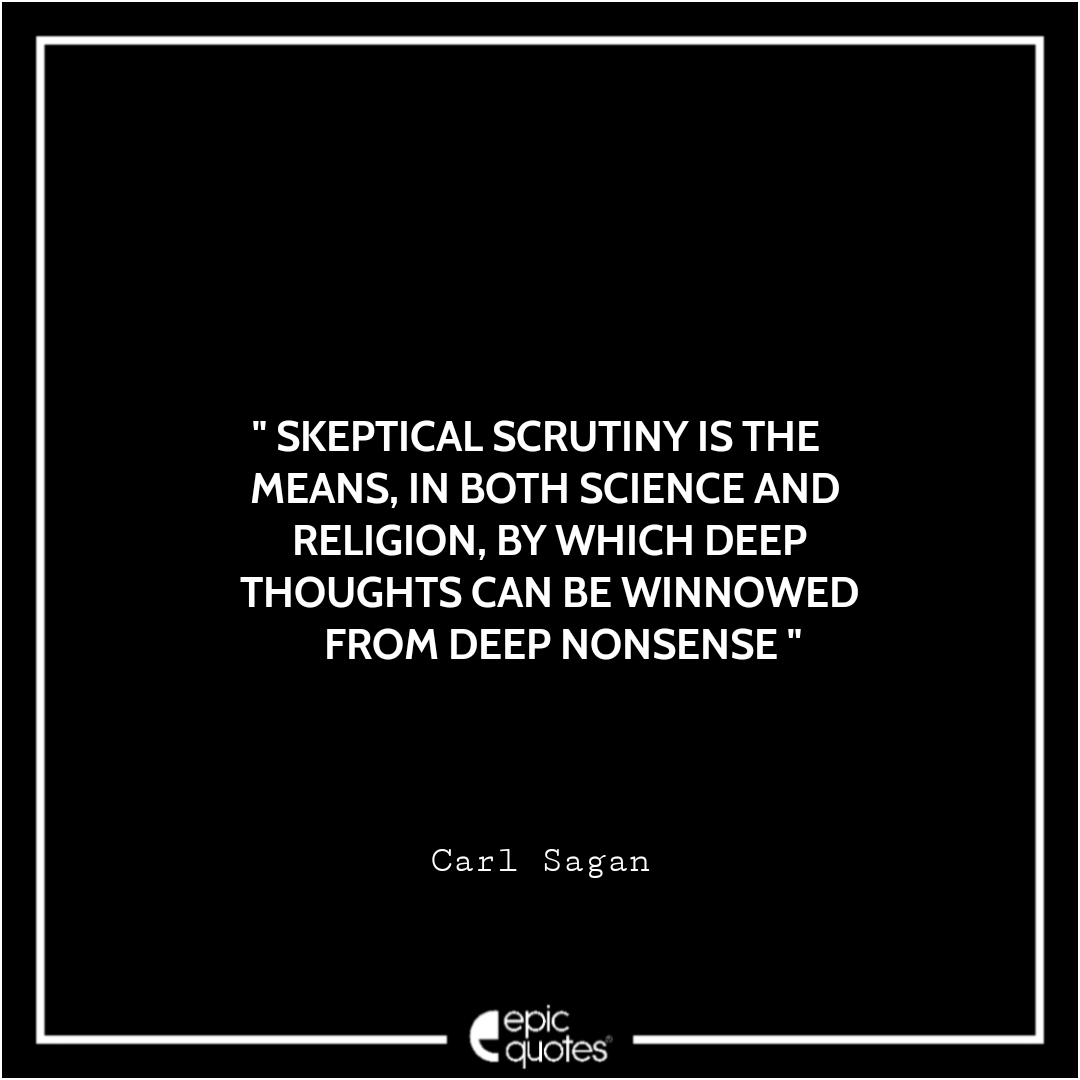 29 Skeptical scrutiny is the means, in both science and religion, by which deep thoughts can be winnowed from deep nonsense. Carl Sagan