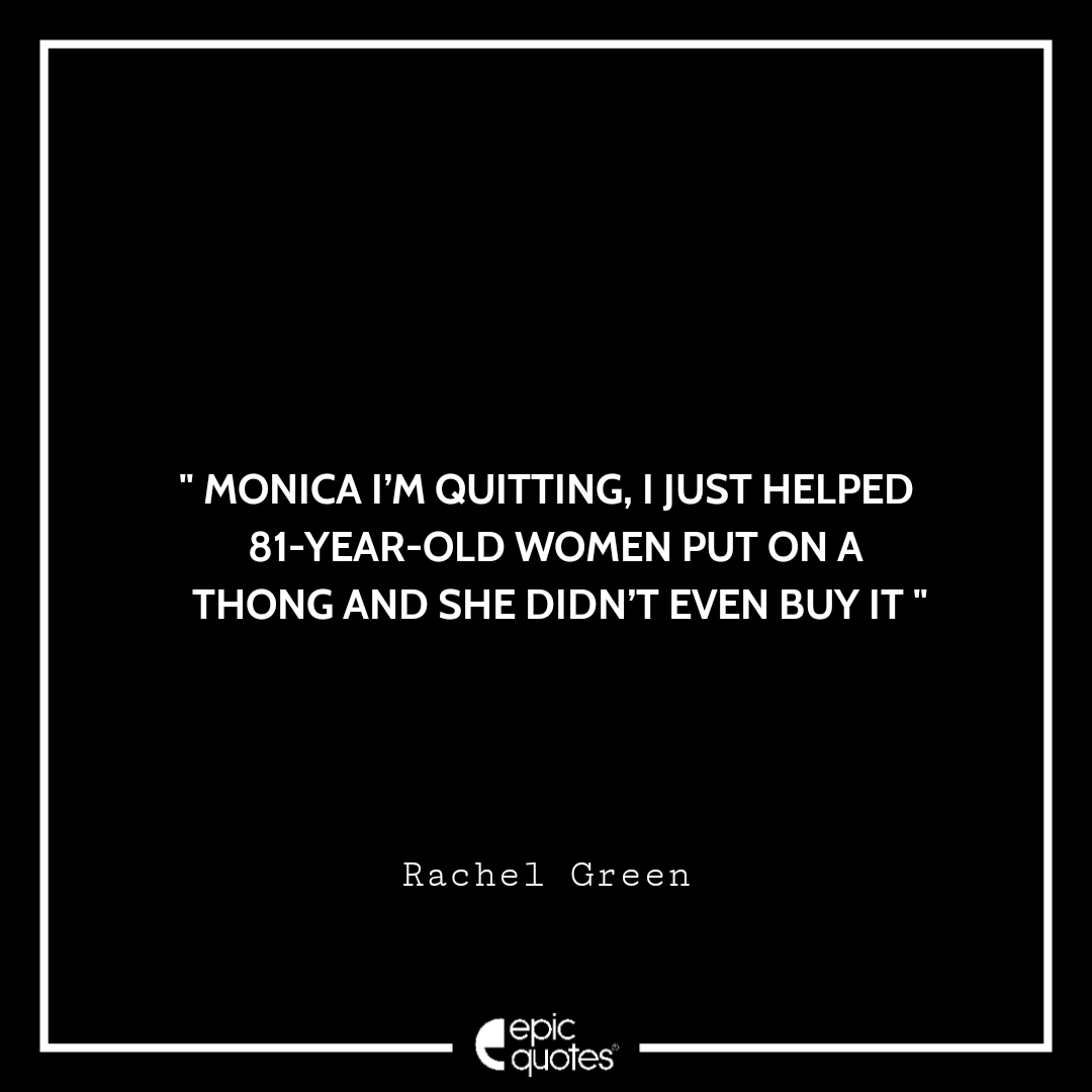 2 . Monica I’m quitting, I just helped 81-year-old women put on a thong and she didn’t even buy it! –Rachel Green
