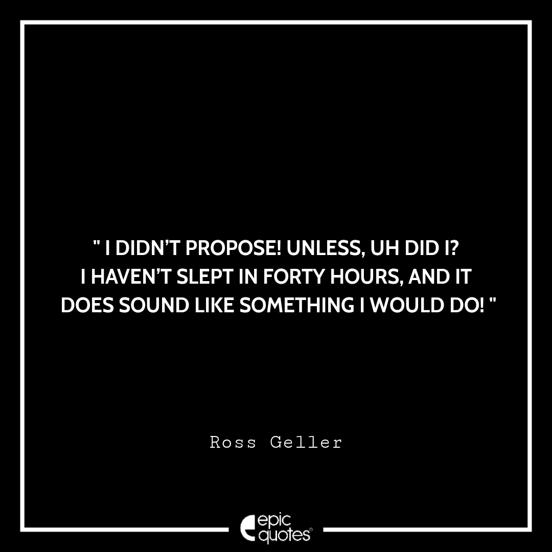 6. I didn’t propose! Unless, uh…did I? I haven’t slept in forty hours, and it does sound like something I would do! –Ross Geller