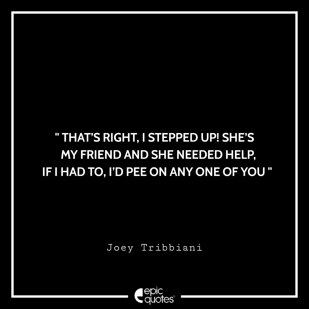 8. That’s right, I stepped up! She’s my friend and she needed help. If I had to, I’d pee on any one of you!” –Joey Tribbiani