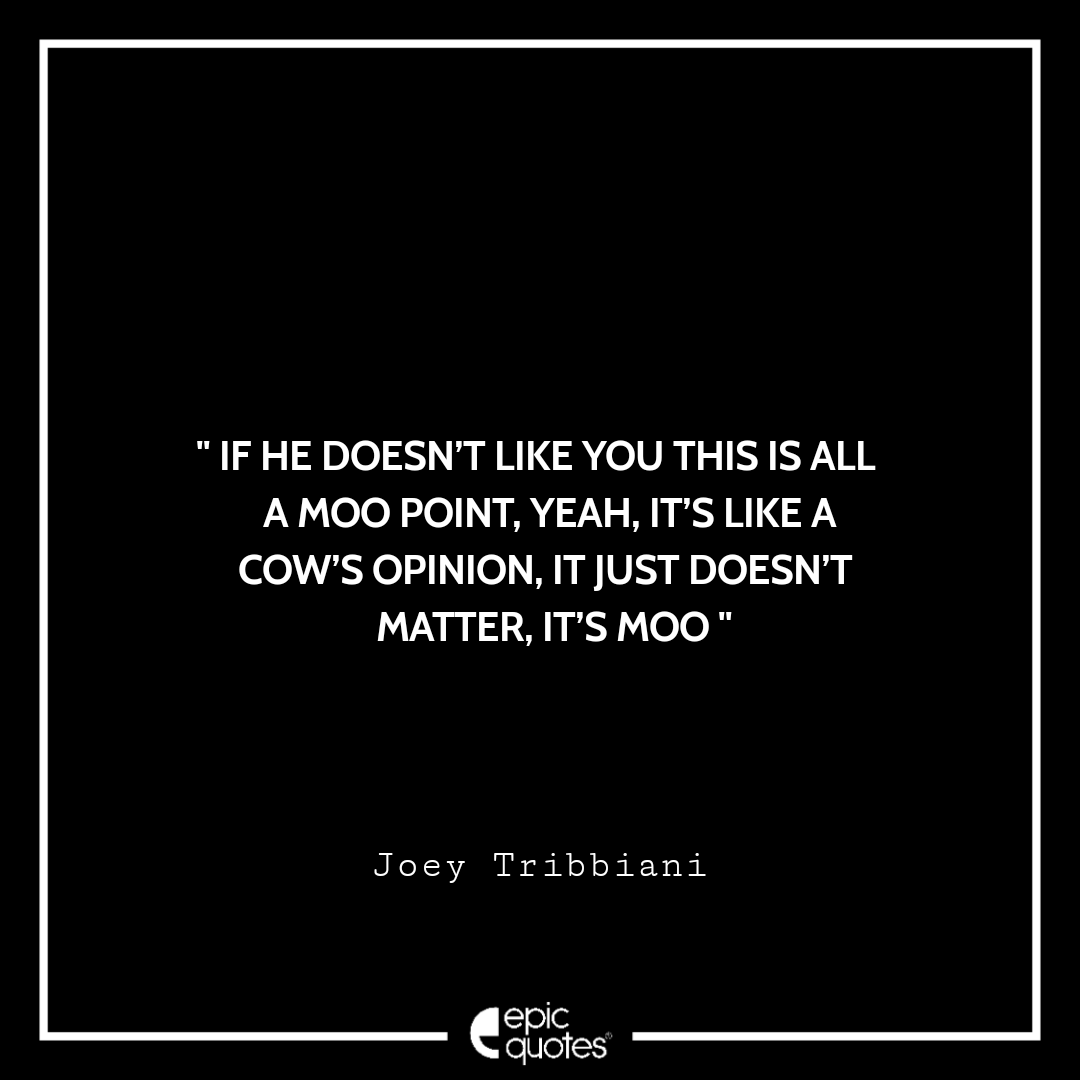 13 . If he doesn’t like you this is all a moo point. … Yeah, it’s like a cow’s opinion. It just doesn’t matter. It’s moo. –Joey Tribbiani