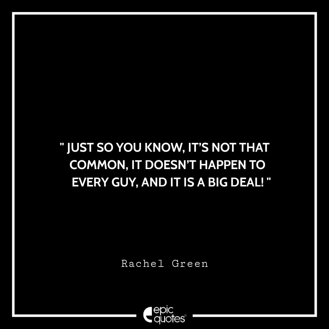 15 . Just so you know, it’s not that common, it doesn’t happen to every guy, and it is a big deal! –Rachel Green