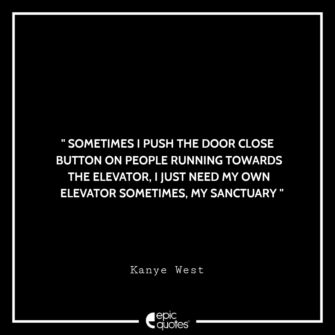 1 Sometimes I push the door close button on people running towards the elevator. I just need my own elevator sometimes. My sanctuary. – Kanye West