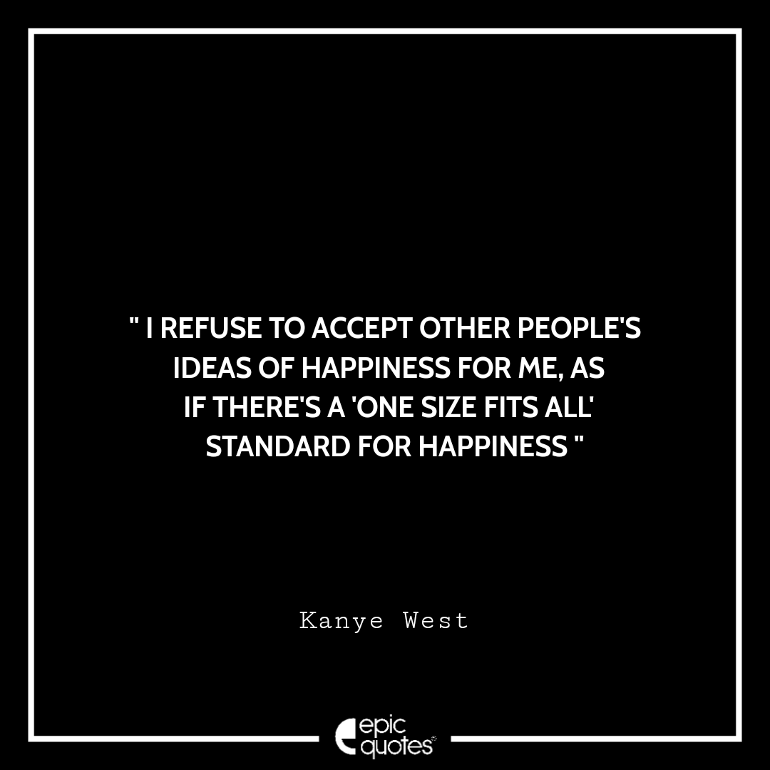 3 I refuse to accept other people’s ideas of happiness for me. As if there’s a ‘one size fits all’ standard for happiness. -Kanye West