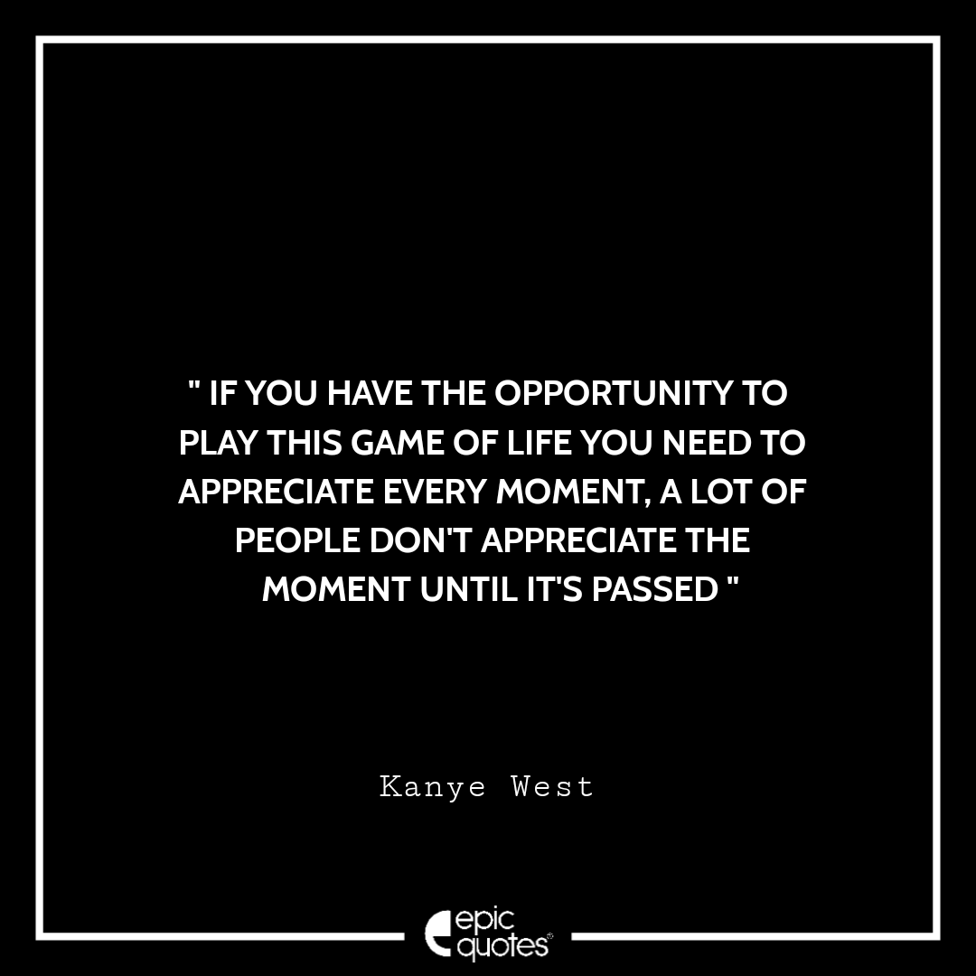 4 If you have the opportunity to play this game of life you need to appreciate every moment. a lot of people don’t appreciate the moment until it’s passed. -Kanye West