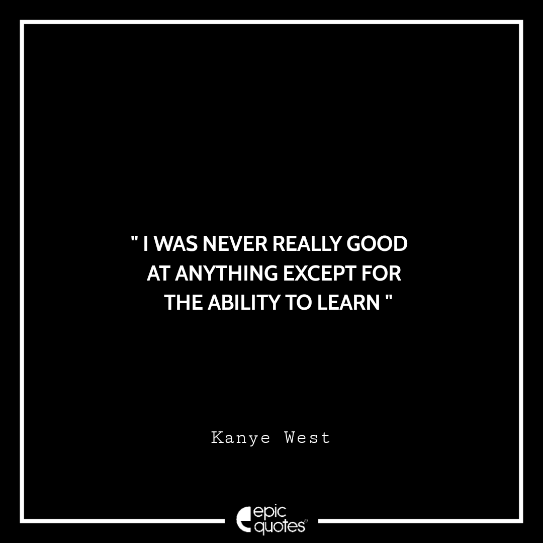 5 I was never really good at anything except for the ability to learn. -Kanye West