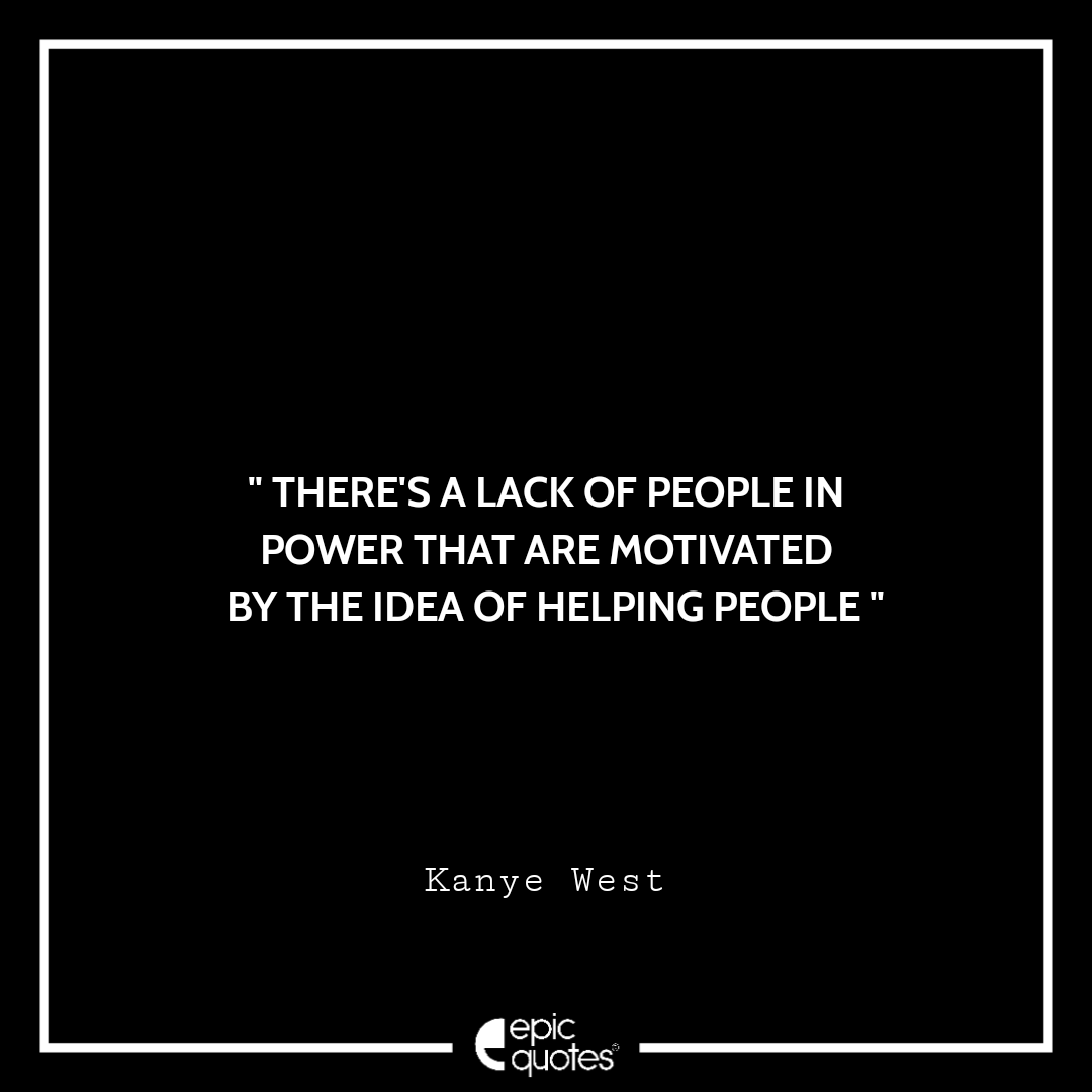 9 There’s a lack of people in power that are motivated by the idea of helping people. -Kanye West