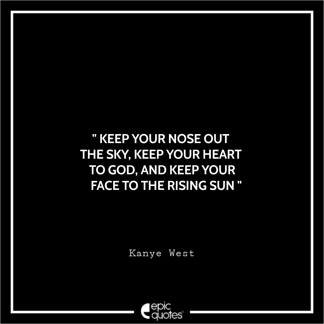 15 Keep your nose out the sky, keep your heart to god, and keep your face to the rising sun. – Kanye West