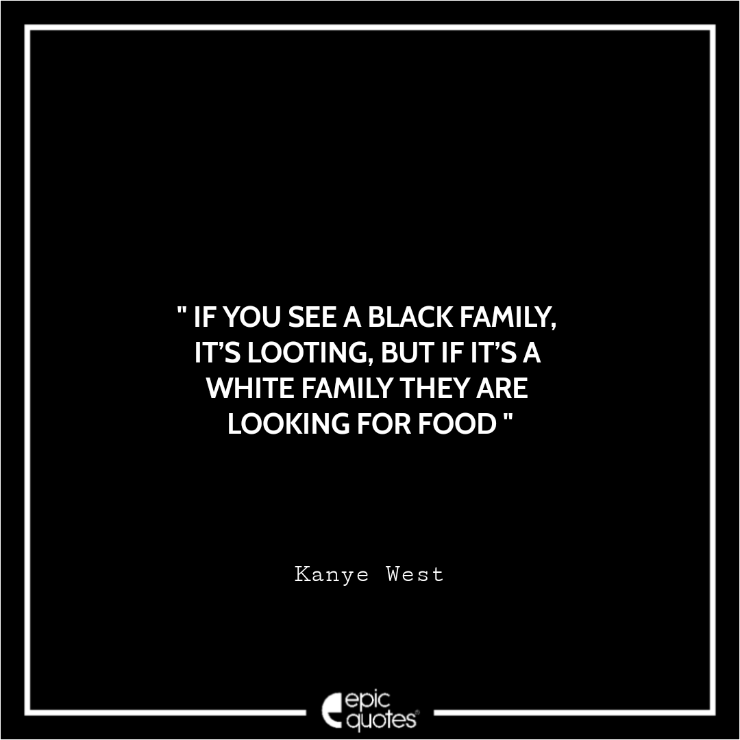 22 If you see a black family, it’s looting, but if it’s a white family they are looking for food. –Kanye West
