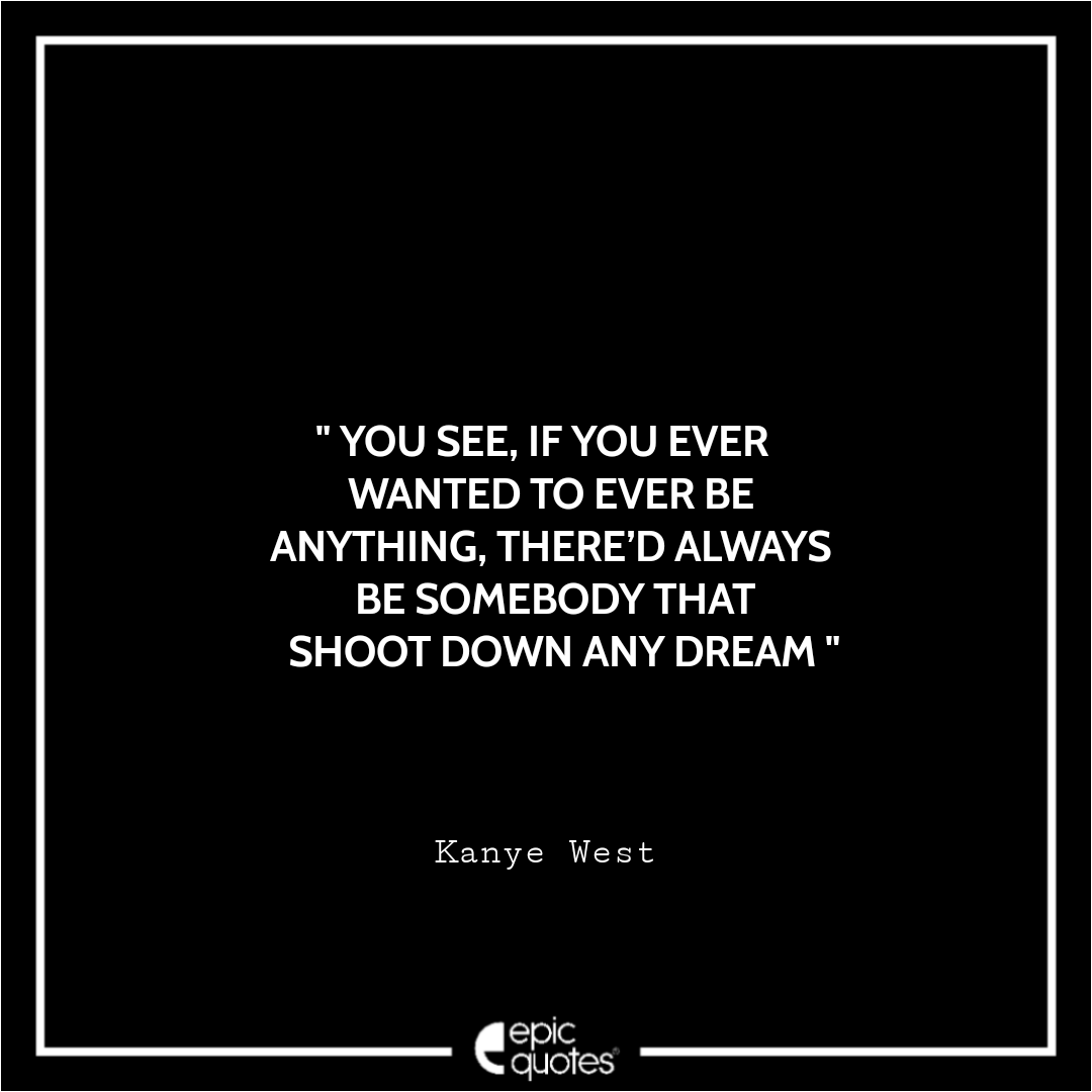 26 You see, if you ever wanted to ever be anything, there’d always be somebody that shoot down any dream. -Kanye West