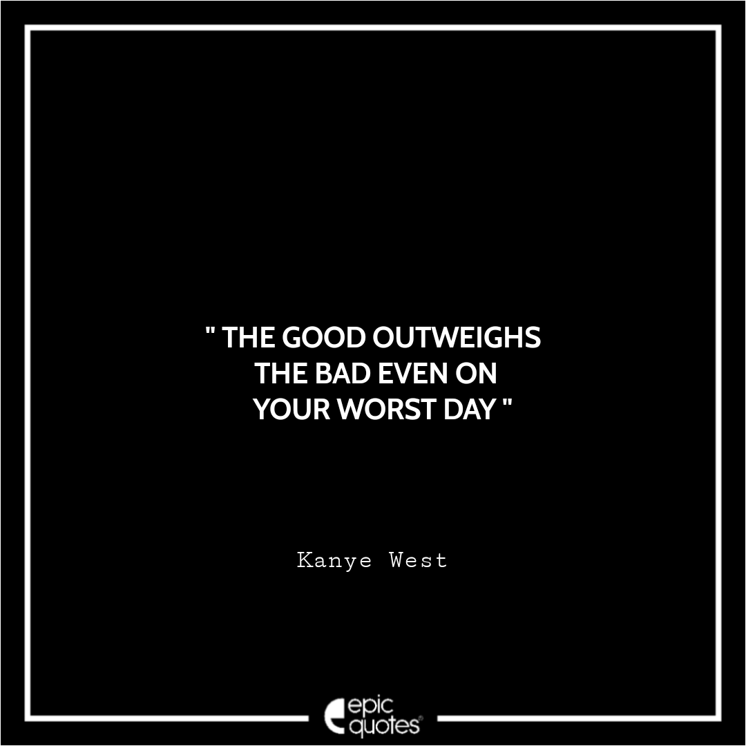 27 The good outweighs the bad even on your worst day. -Kanye West