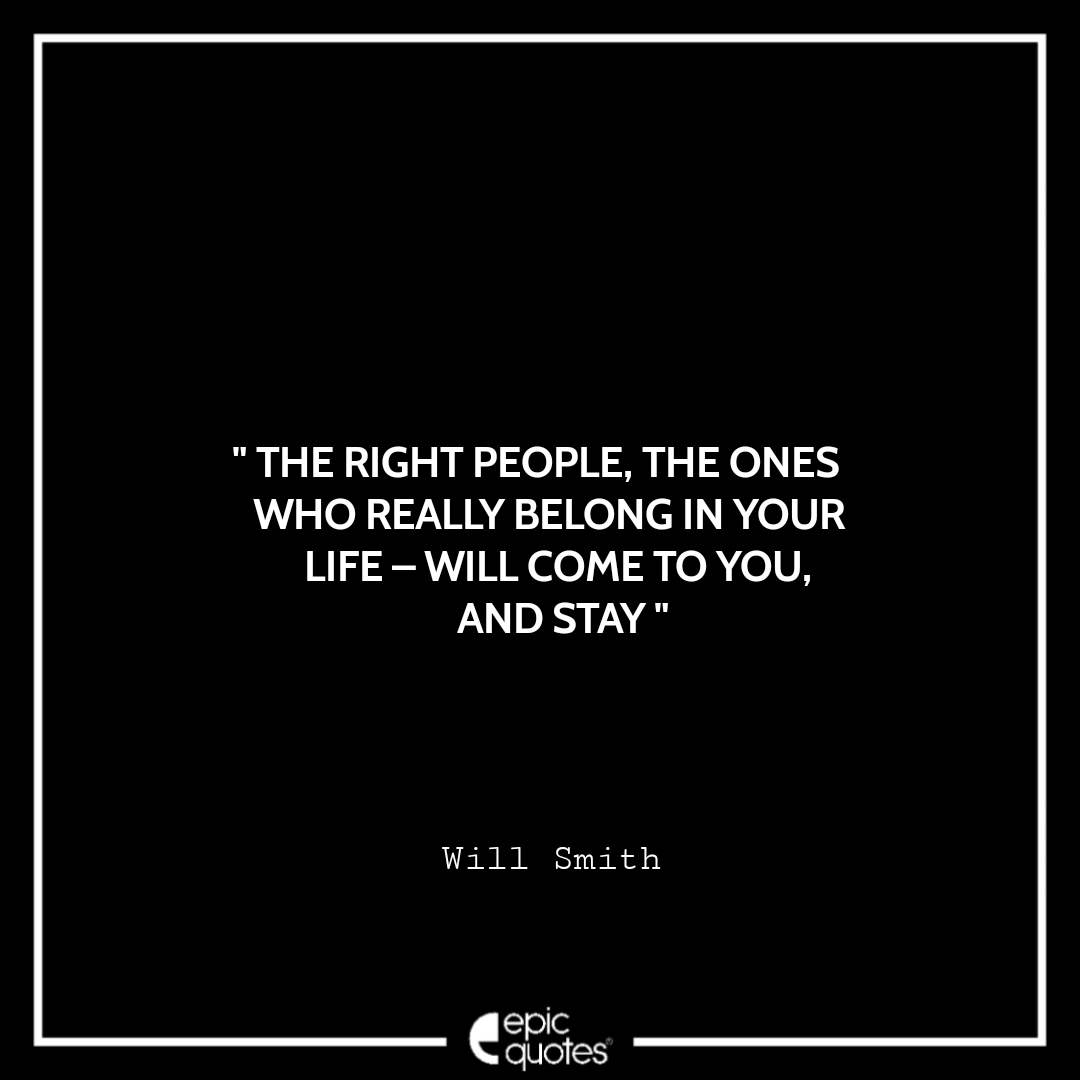 13. The right people, the ones who really belong in your life – will come to you, And stay. –Will Smith