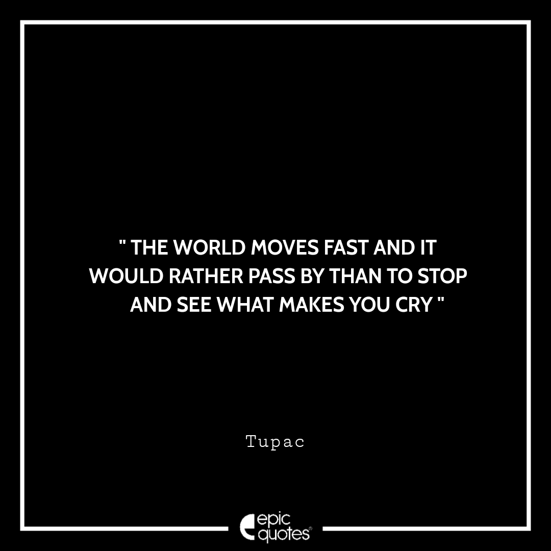 14. The world moves fast and it would rather pass by than to stop and see what makes you cry. -Tupac