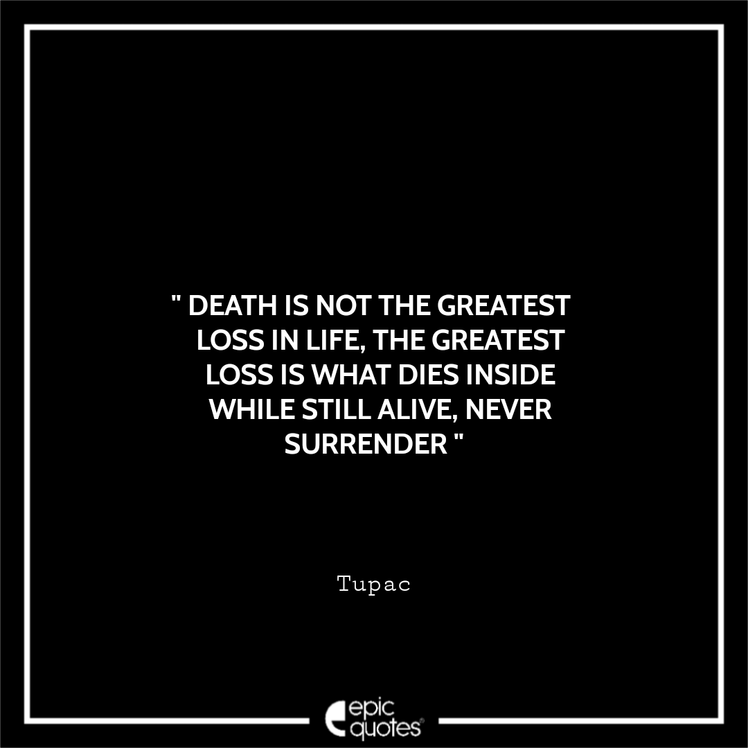 16. Death is not the greatest loss in life, the greatest loss is what dies inside while still alive, Never surrender. -Tupac