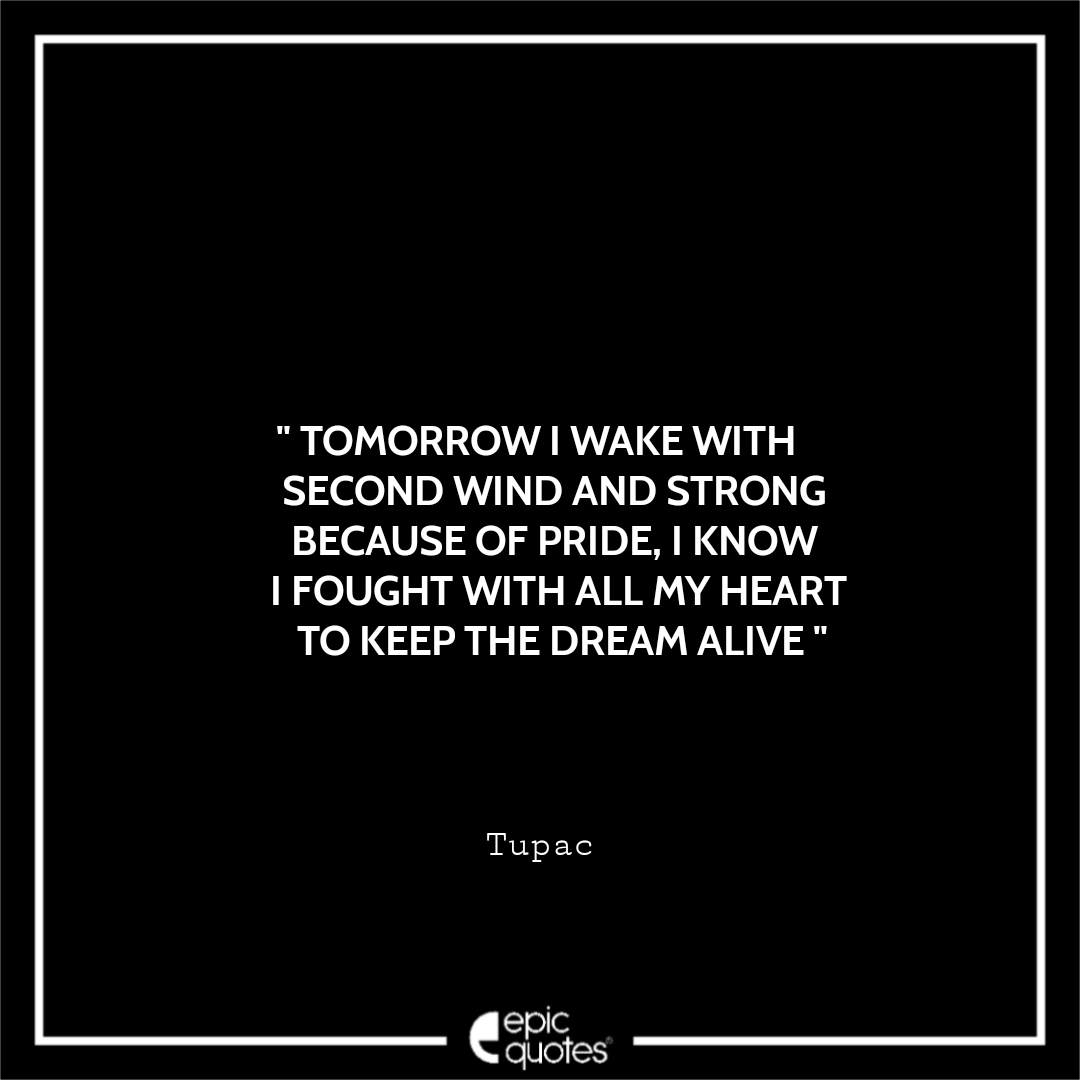 19 Tomorrow I wake with second wind and strong because of pride, I know I fought with all my heart to keep the dream alive. -Tupac