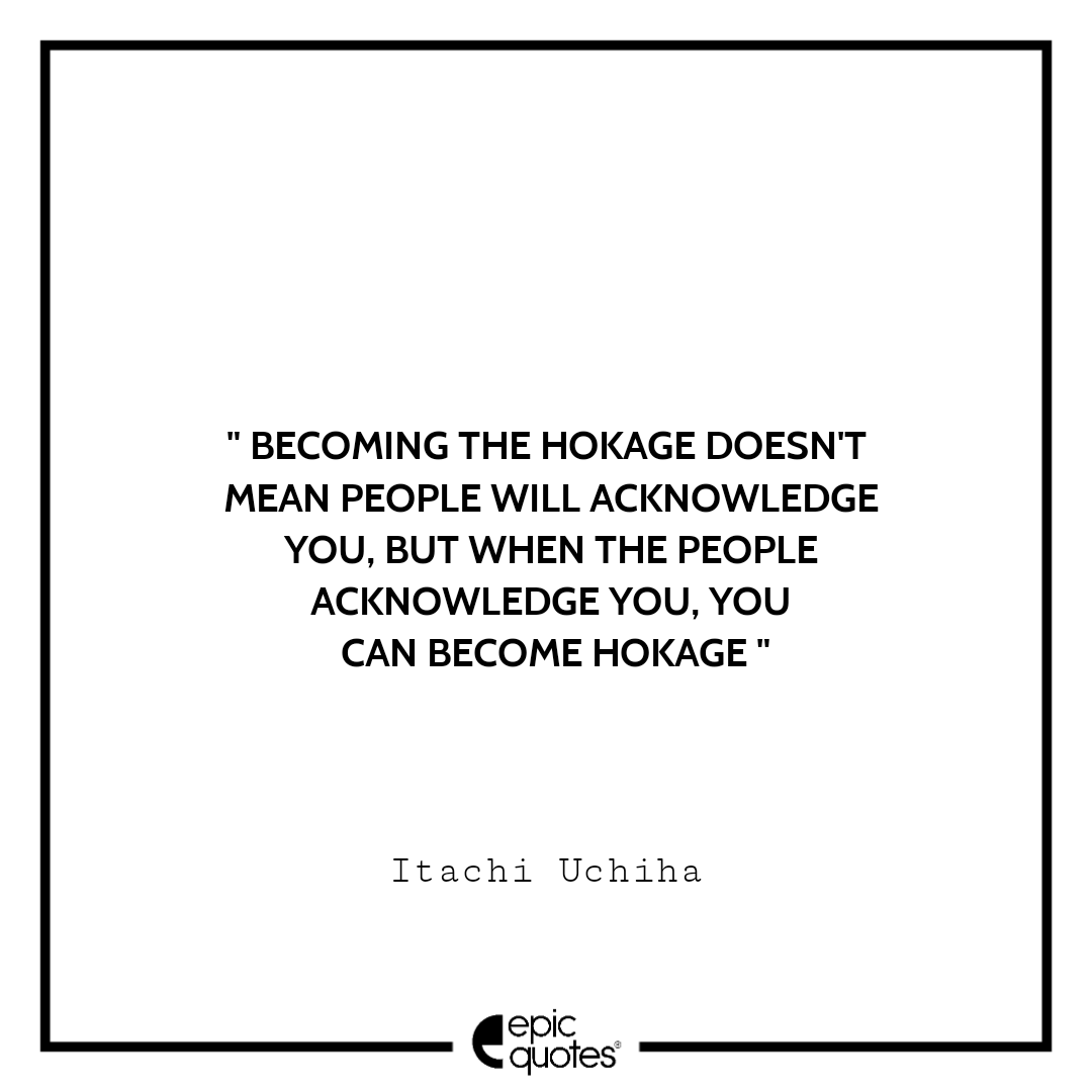 8 Becoming the Hokage doesn’t mean people will acknowledge you, but when the people acknowledge you, you can become Hokage. -Itachi Uchiha