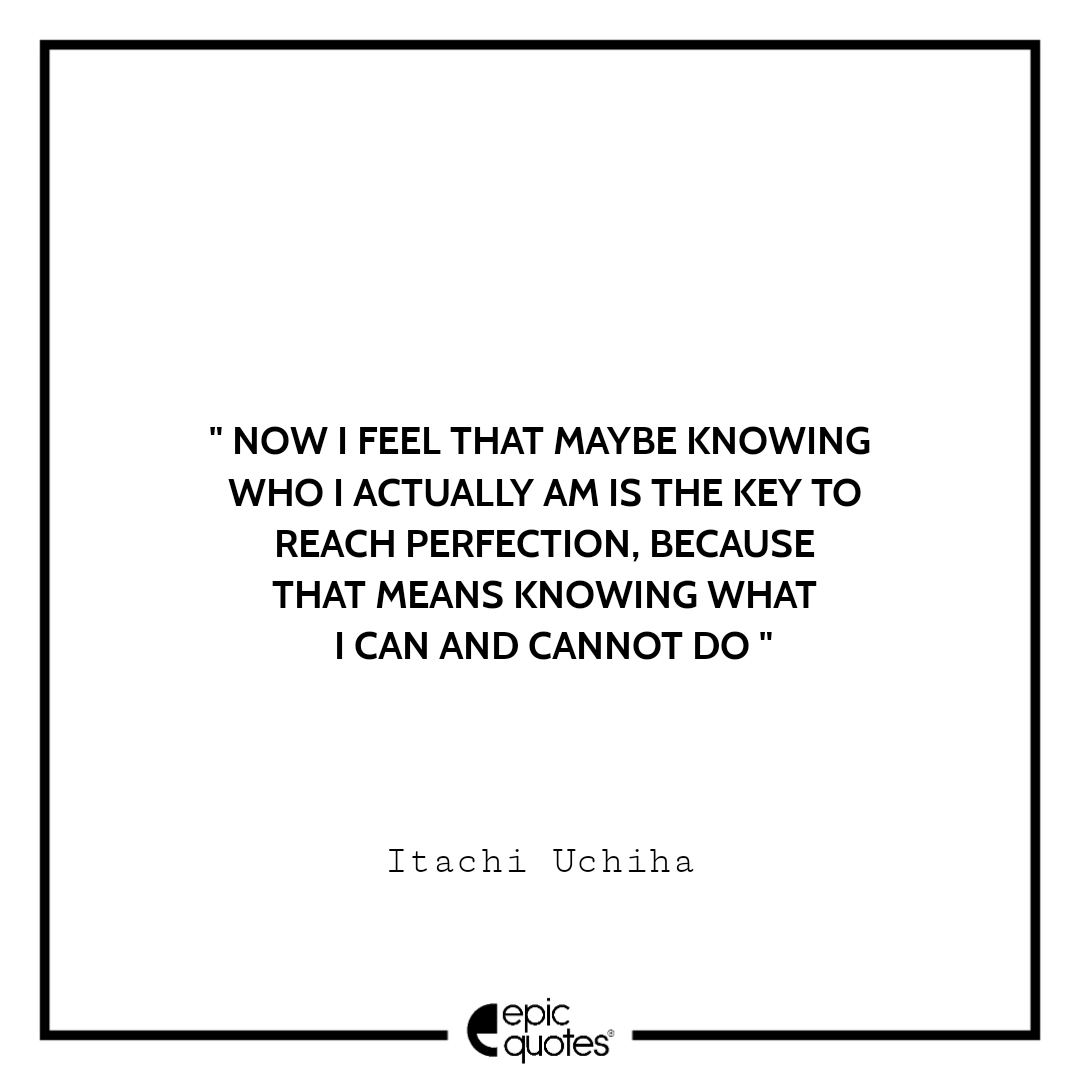 15 Now I feel that maybe knowing who I actually am is the key to reach perfection. Because that means knowing what I can and cannot do. -Itachi Uchiha