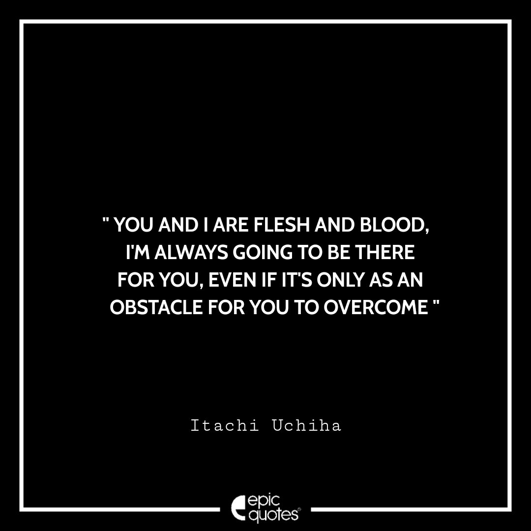 17 You and I are flesh and blood, I’m always going to be there for you, even if it’s only as an obstacle for you to overcome. -Itachi Uchiha