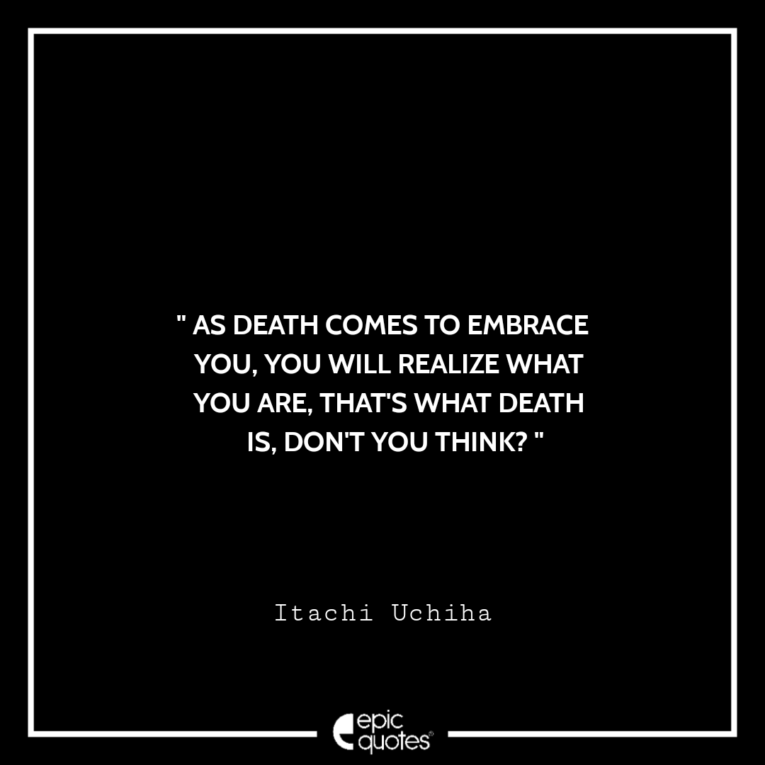 18 As death comes to embrace you, you will realize what you are, That’s what death is, don’t you think? -Itachi Uchiha