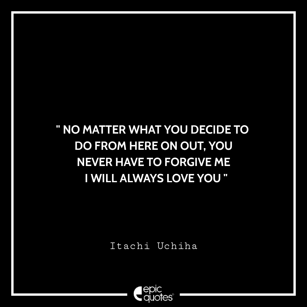24 No matter what you decide to do from here on out, you never have to forgive me – I will always love you. -Itachi Uchiha