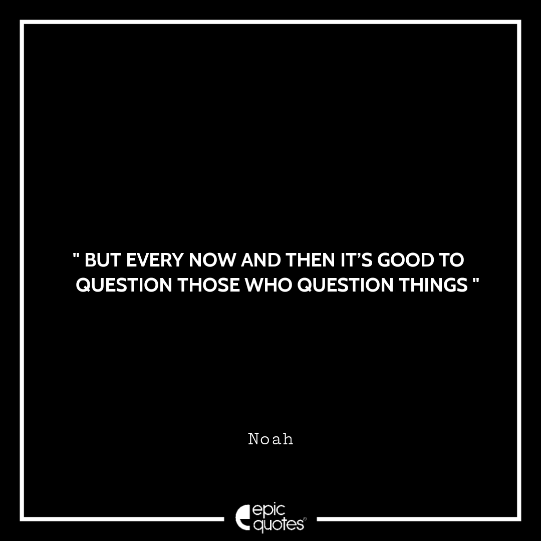 8. But every now and then it’s good to question those who question things. – Noah