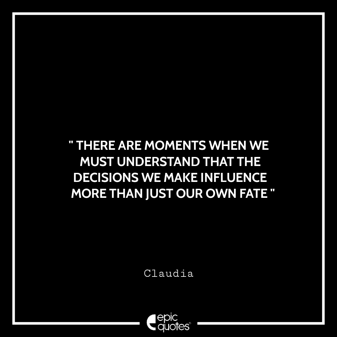 11. There are moments when we must understand that the decisions we make influence more than just our own fate. – Claudia