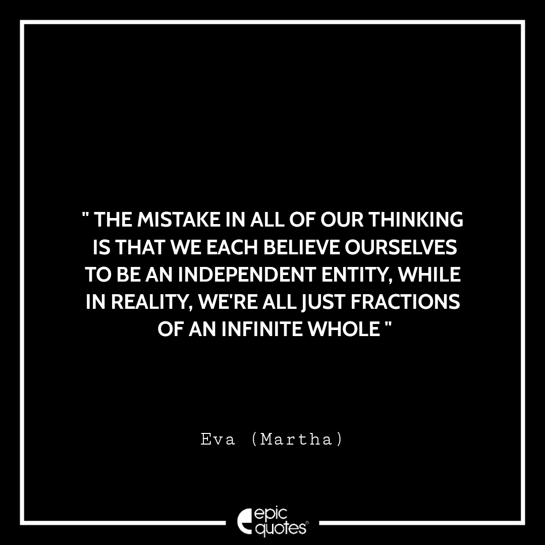 30. The mistake in all of our thinking is that we each believe ourselves to be an independent entity. While in reality, we’re all just fractions of an infinite whole. – Eva (Martha)