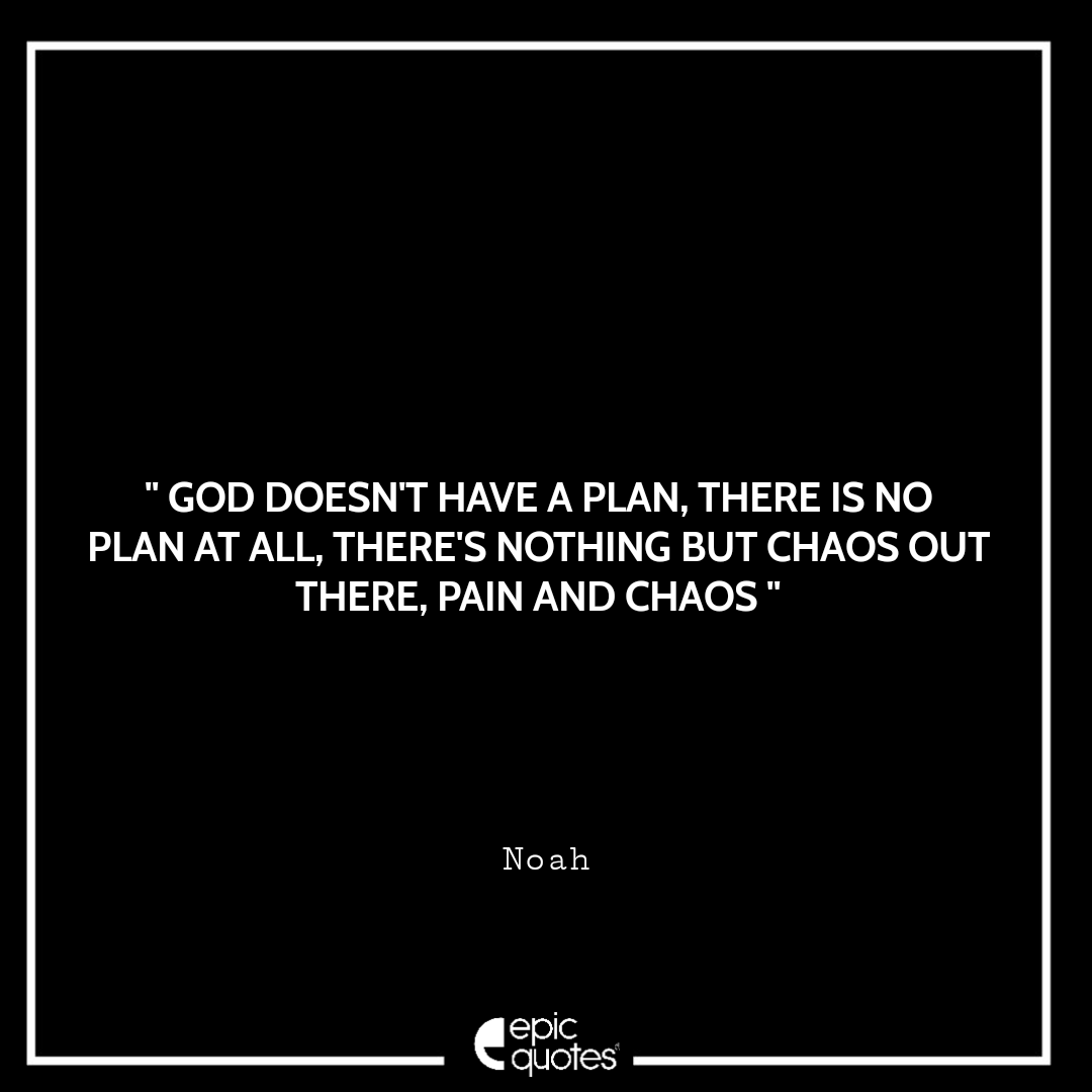 32. God doesn’t have a plan, there is no plan at all, there’s nothing but chaos out there, pain and chaos. -Noah