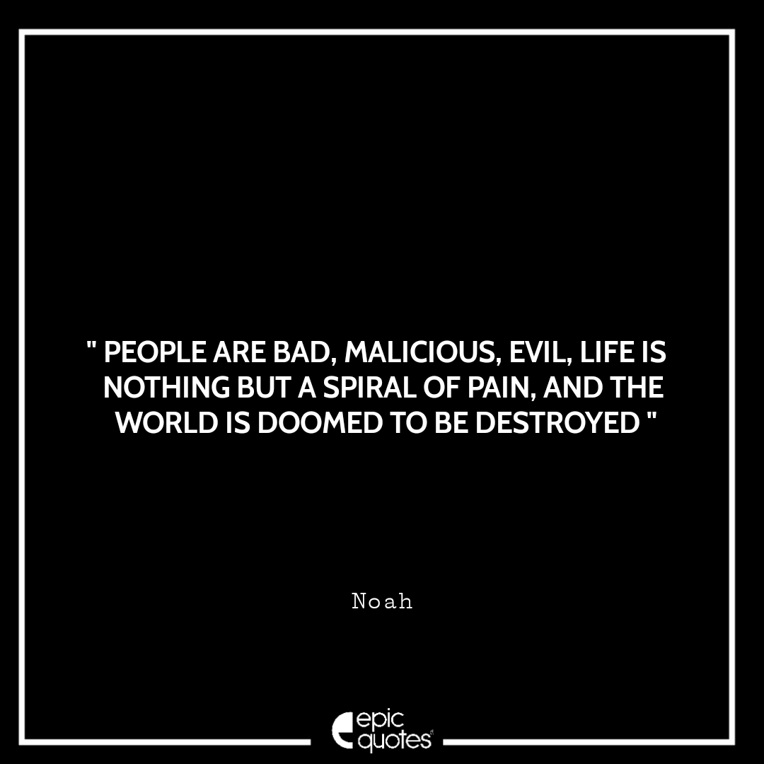 33 People are bad, malicious, evil, life is nothing but a spiral of pain, and the world is doomed to be destroyed. -Noah
