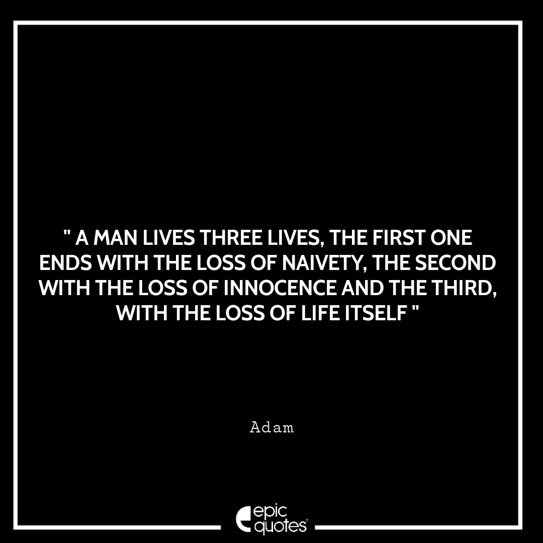 34 A man lives three líves, the first one ends with the loss of naivety, the second with the loss of innocence and the third, with the loss of life itself. -Adam