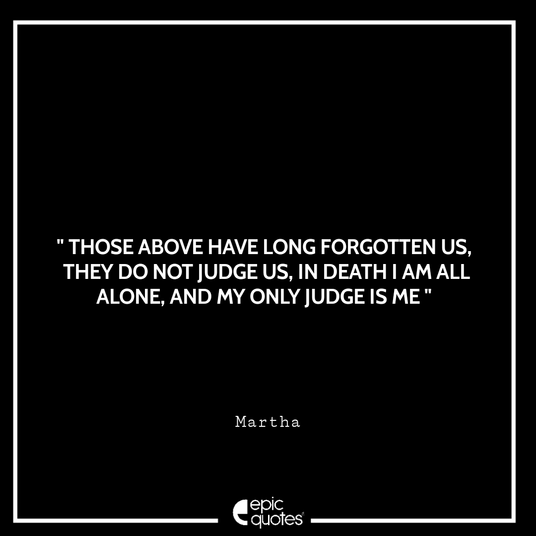 35 Those above have long forgotten us, they do not judge us, in death I am all alone, and my only judge is me. -Martha