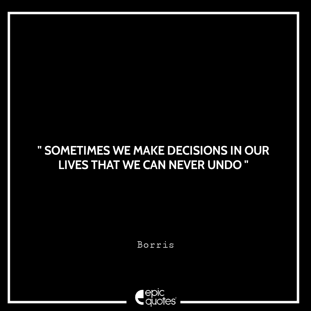 39. Sometimes we make decisions in our lives that we can never undo. -Borris