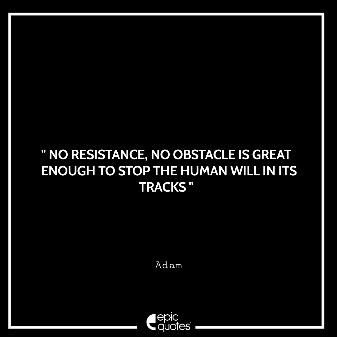 42 No resistance, no obstacle is great enough to stop the human will in its tracks. -Adam