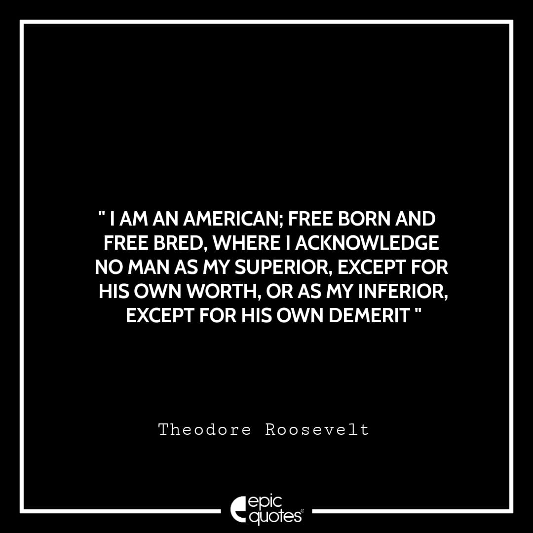 32. I am an American; free born and free bred, where I acknowledge no man as my superior, except for his own worth, or as my inferior, except for his own demerit -Theodore Roosevelt