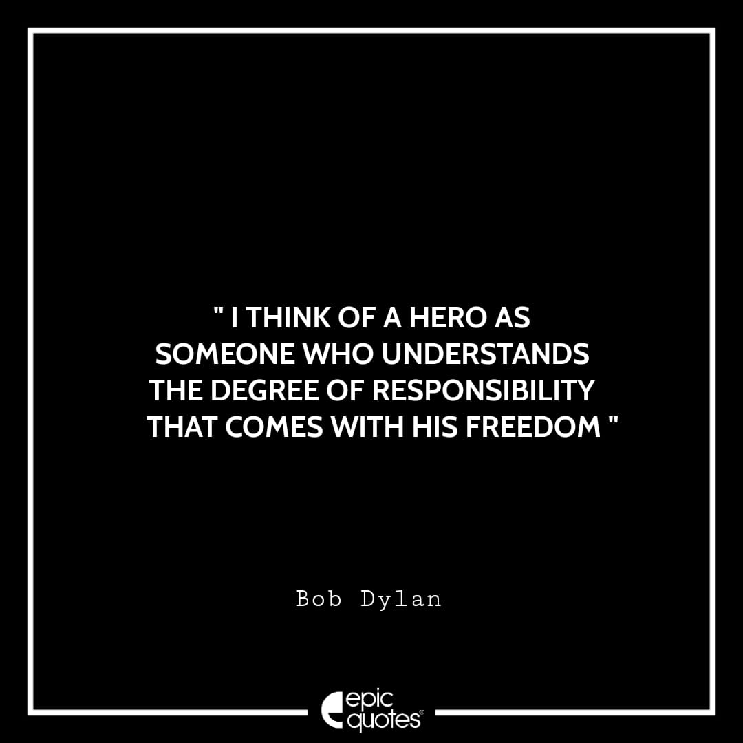 34 I think of a hero as someone who understands the degree of responsibility that comes with his freedom -Bob Dylan