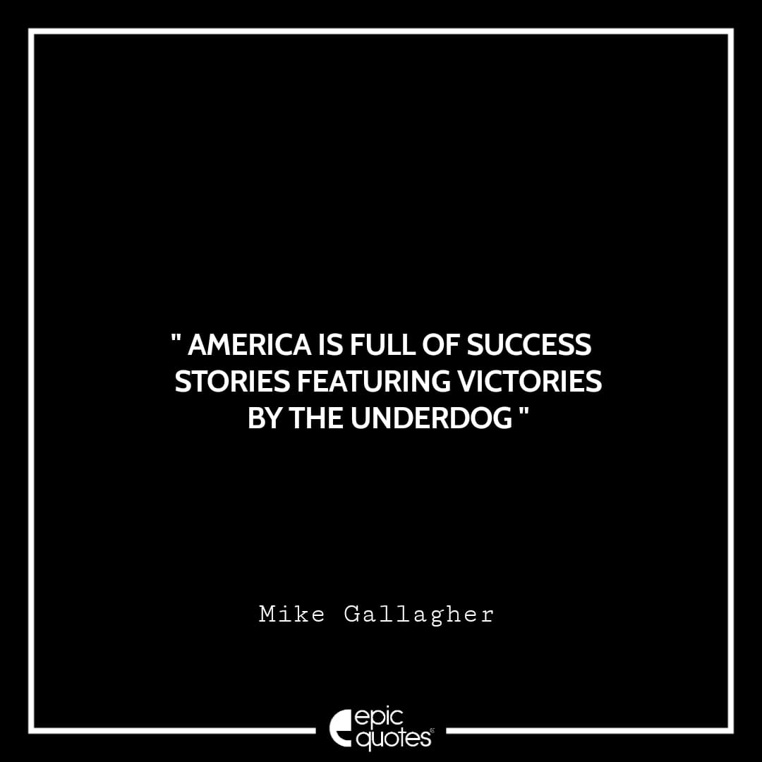 37. America is full of success stories featuring victories by the underdog -Mike Gallagher
