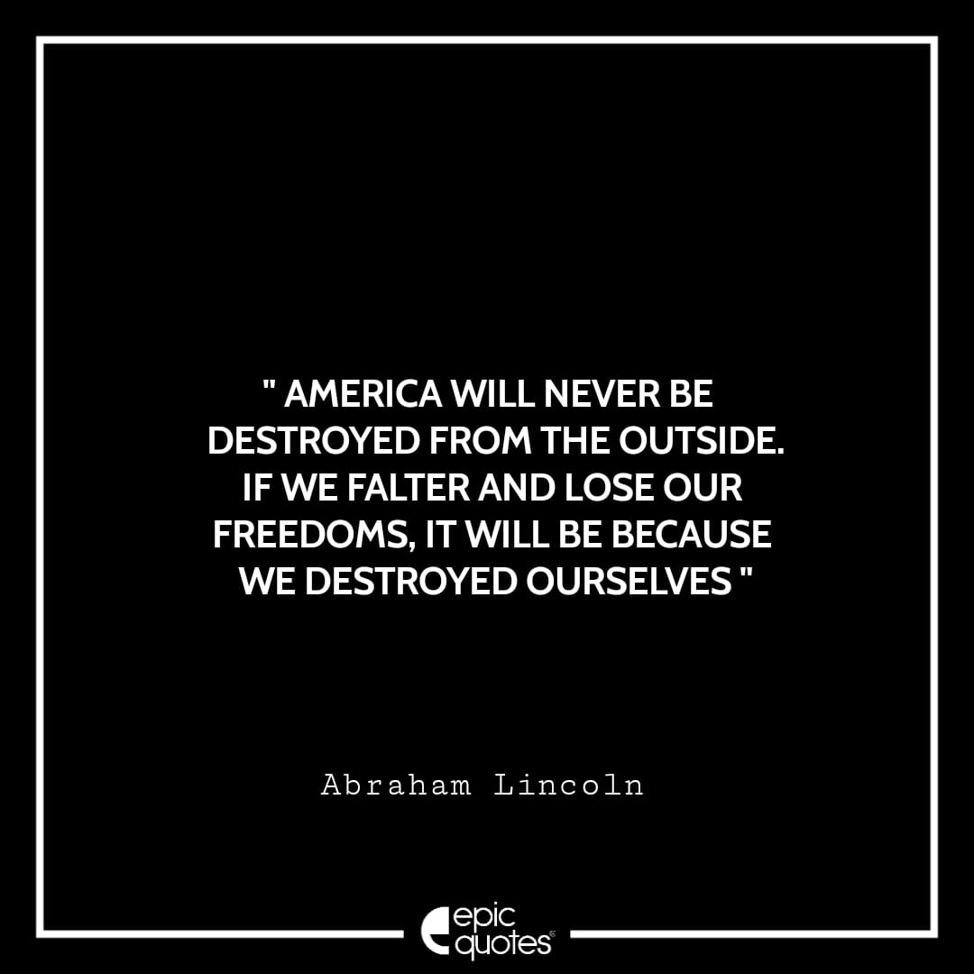 39. America will never be destroyed from the outside. If we falter and lose our freedoms, it will be because we destroyed ourselves -Abraham Lincoln