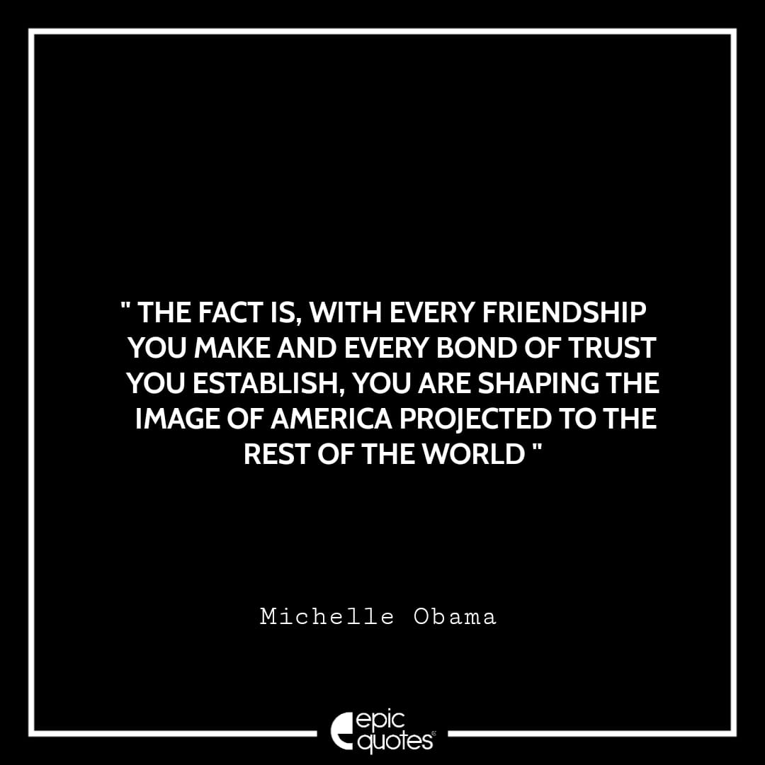 44 The fact is, with every friendship you make and every bond of trust you establish, you are shaping the image of America projected to the rest of the world -Michelle Obama