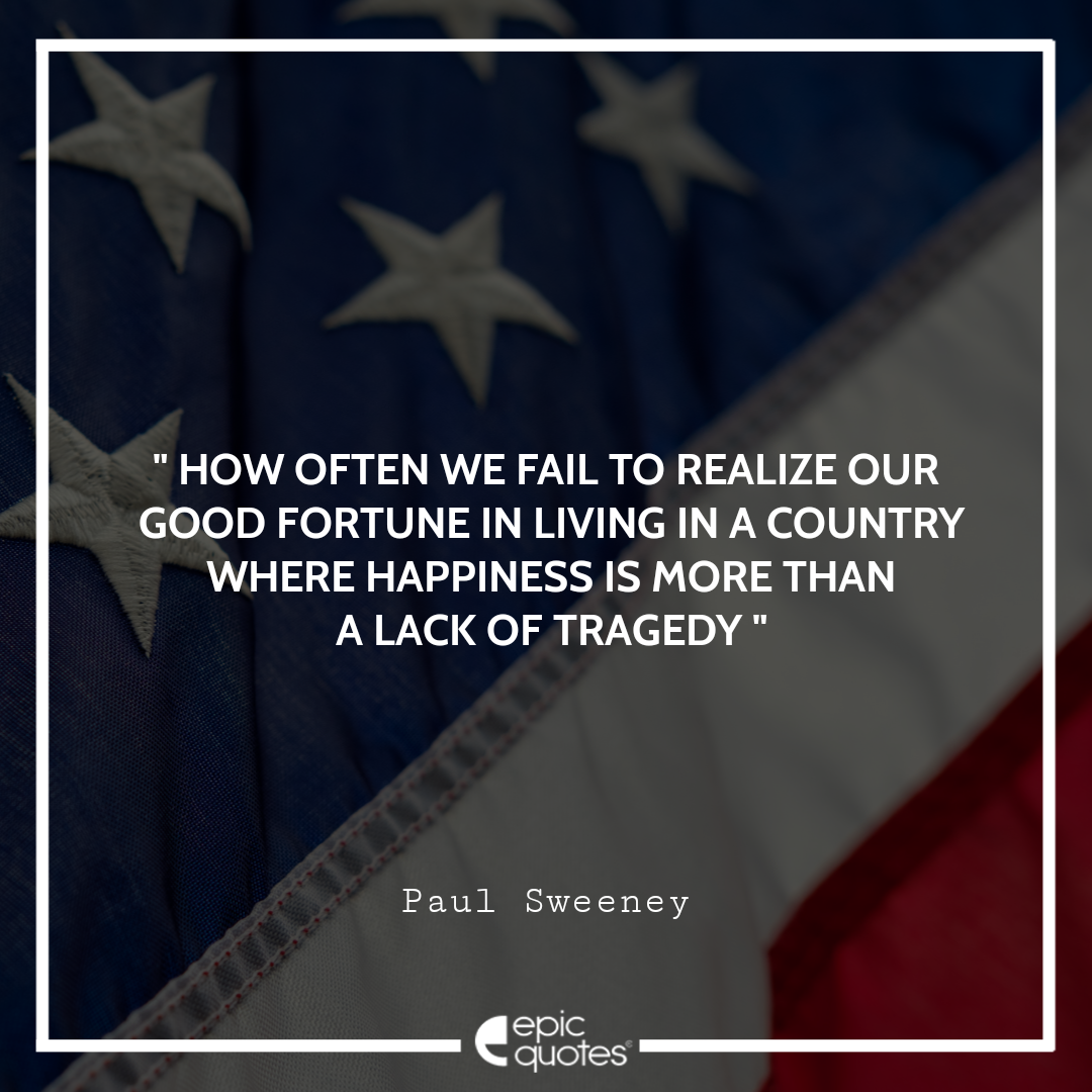 2. How often we fail to realize our good fortune in living in a country where happiness is more than a lack of tragedy