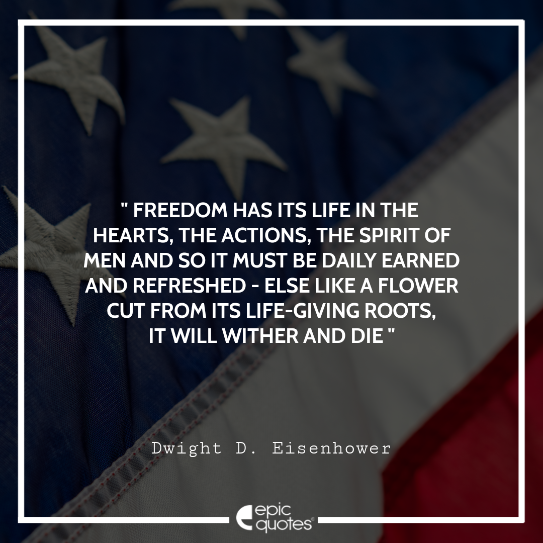 13. Freedom has its life in the hearts, the actions, the spirit of men and so it must be daily earned and refreshed – else like a flower cut from its life-giving roots, it will wither and die