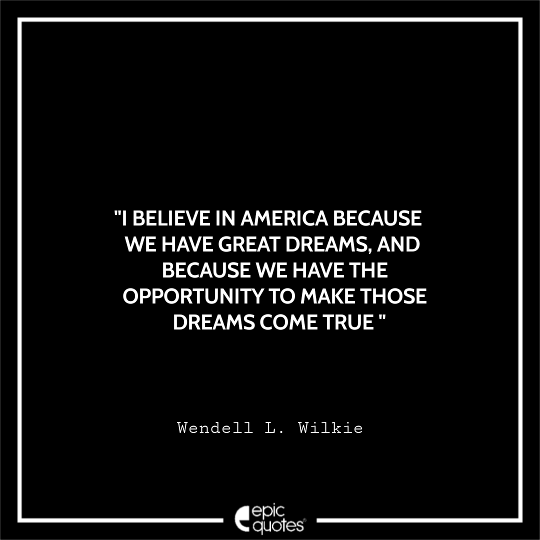 16. I believe in America because we have great dreams, and because we have the opportunity to make those dreams come true. –Wendell L. Wilkie