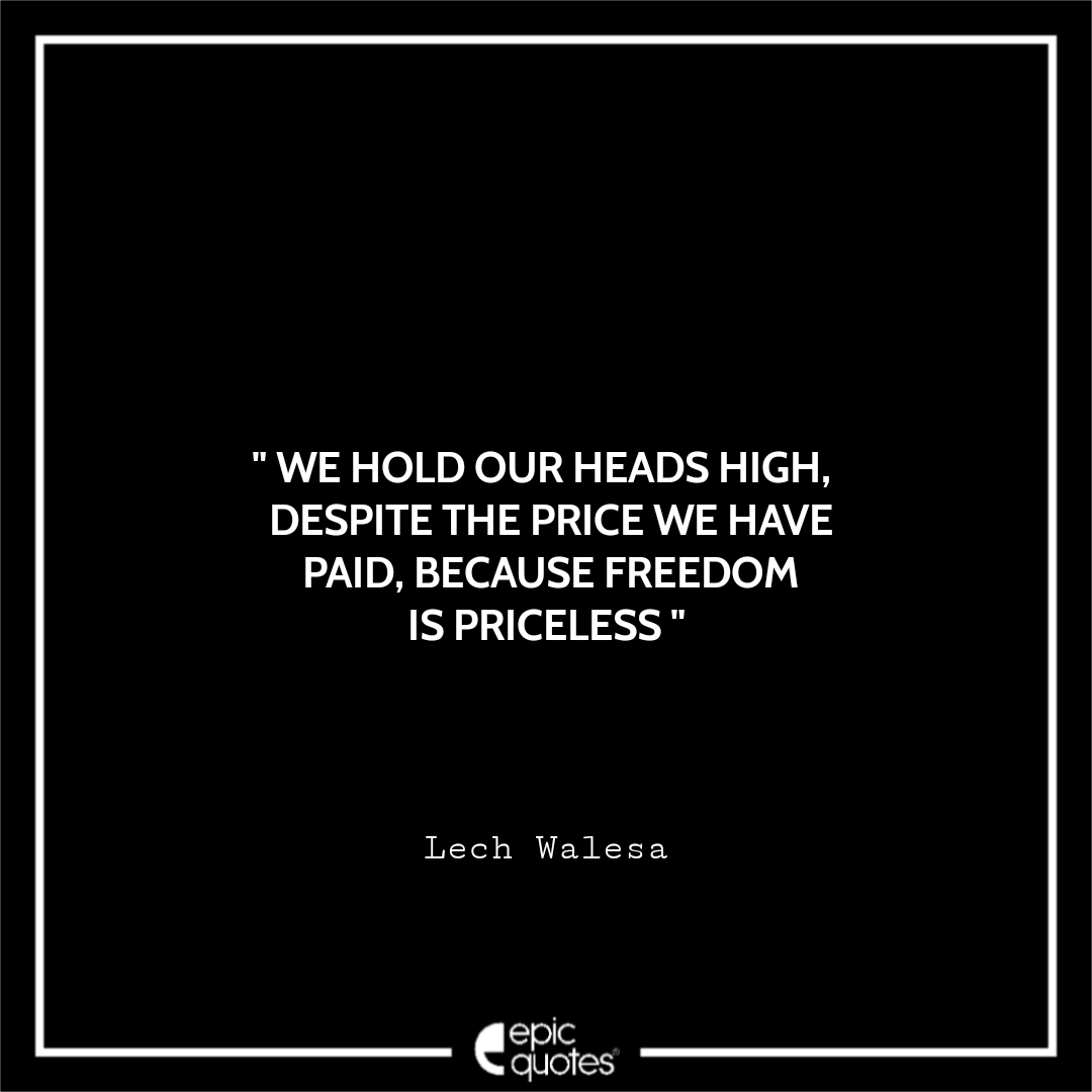 20. We hold our heads high, despite the price we have paid, because freedom is priceless. –Lech Walesa