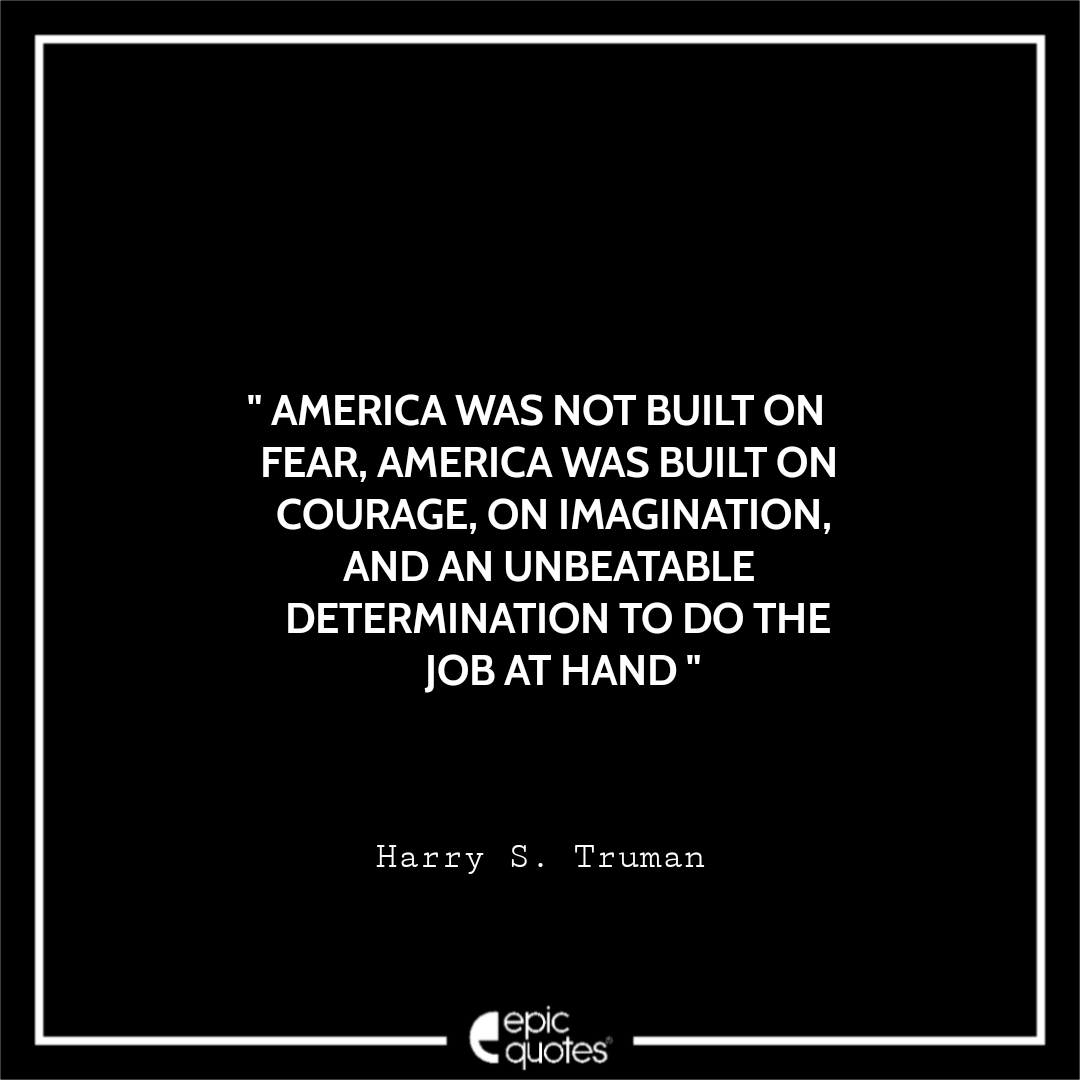 22. America was not built on fear, America was built on courage, on imagination, and an unbeatable determination to do the job at hand. -Harry S. Truman